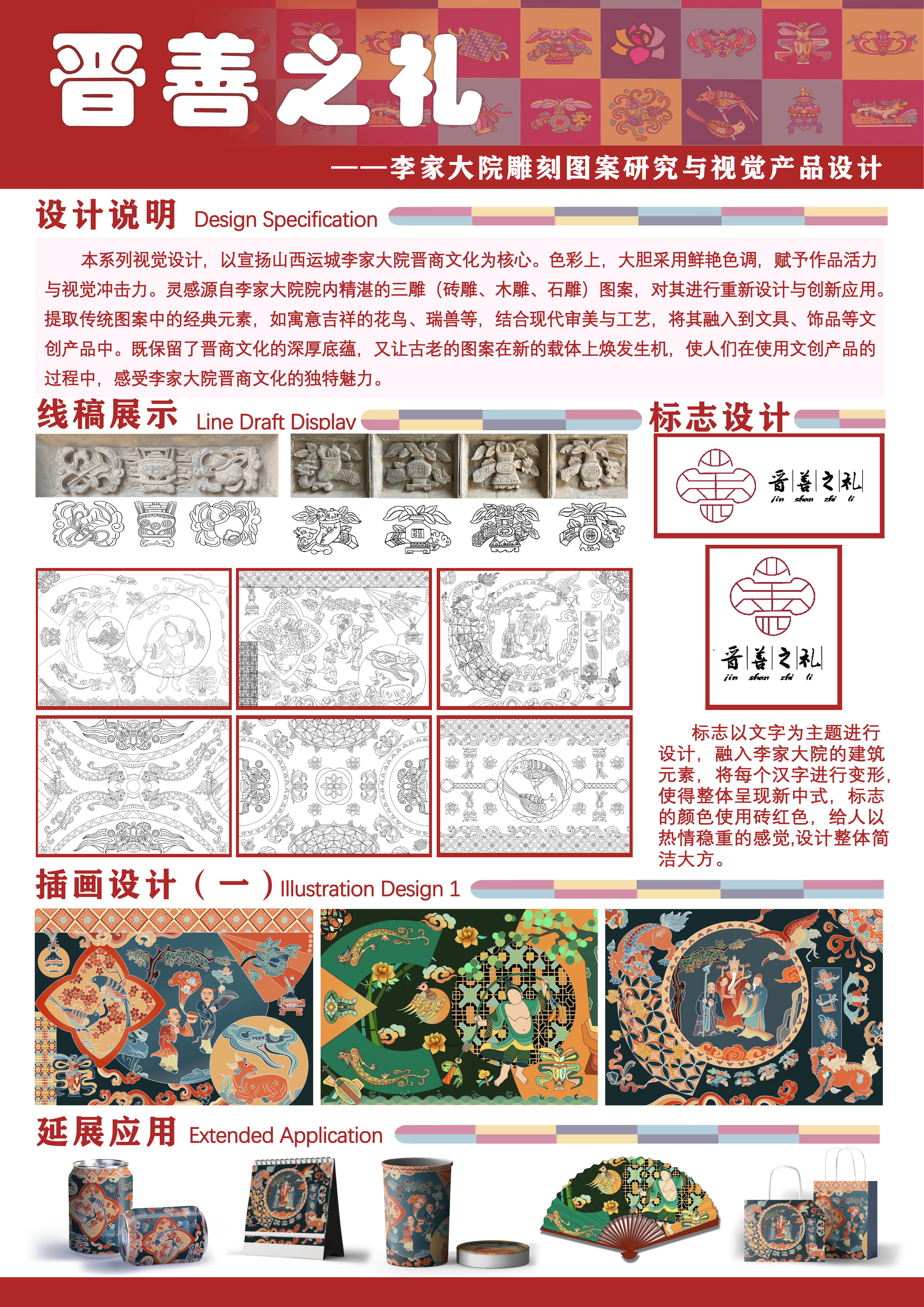 作品名称:《晋善之礼——李家大院雕刻图案研究与视觉产品设计》