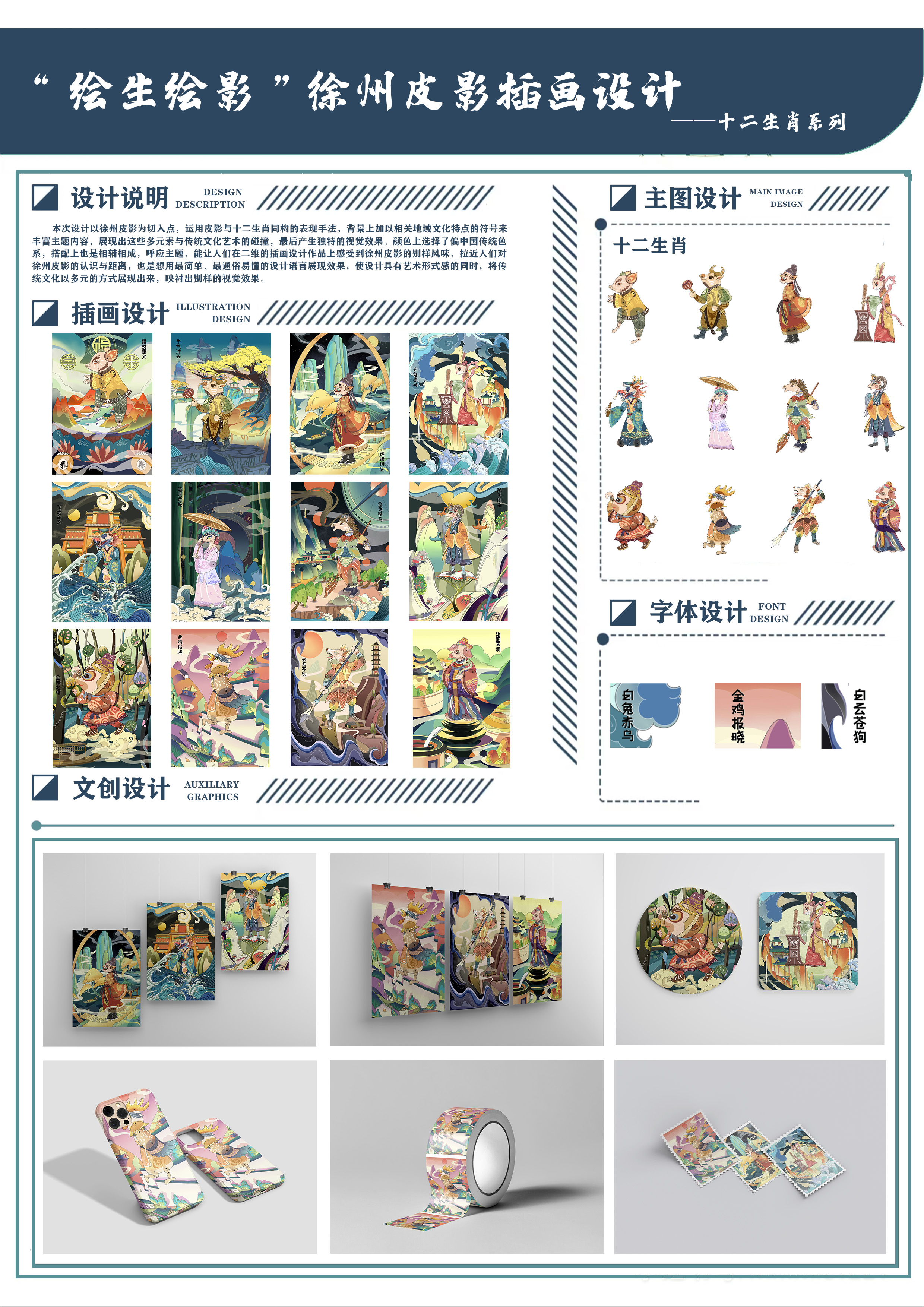 作品名称:“绘生绘影”徐州皮影插画设计——十二生肖系列